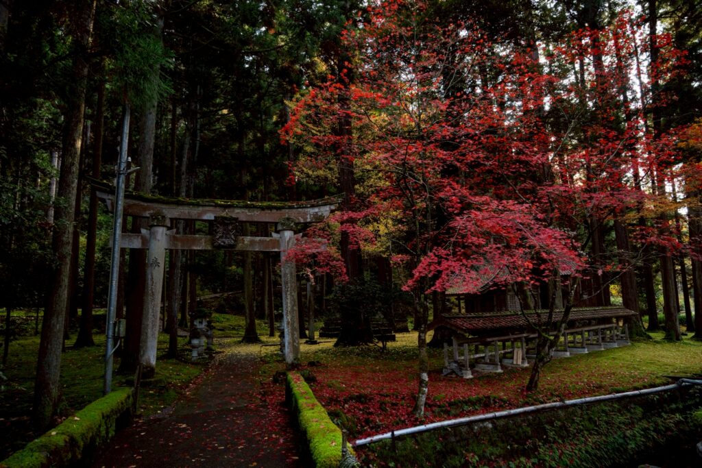 日用杉という建材などとしても人気が高い杉林が整備され、その合間を縫うような苔の緑と紅葉が特徴的です。