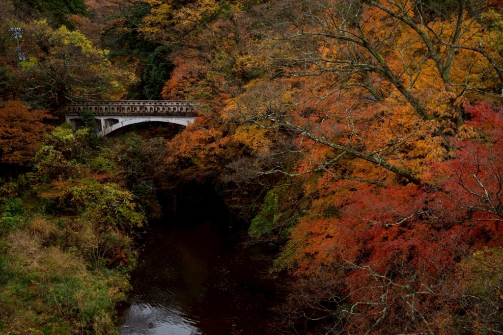 こおろぎ橋、あやとり橋、黒谷橋といった特徴的な橋もあり、これらと絡めた紅葉も風情があります。