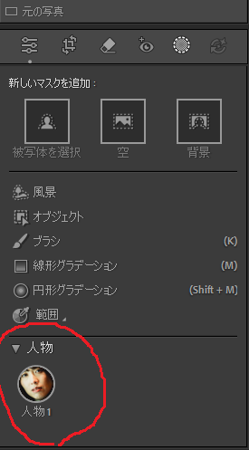 最近のlightroomでは、AIも使ったマスク機能が充実してきました。