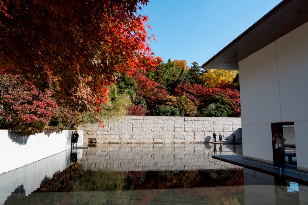 四季それぞれに様々な景色が楽しめ、建物を取り囲む水鏡の庭が特徴の1つとなっています。